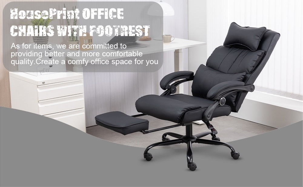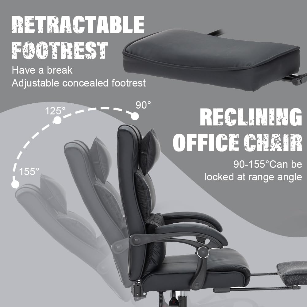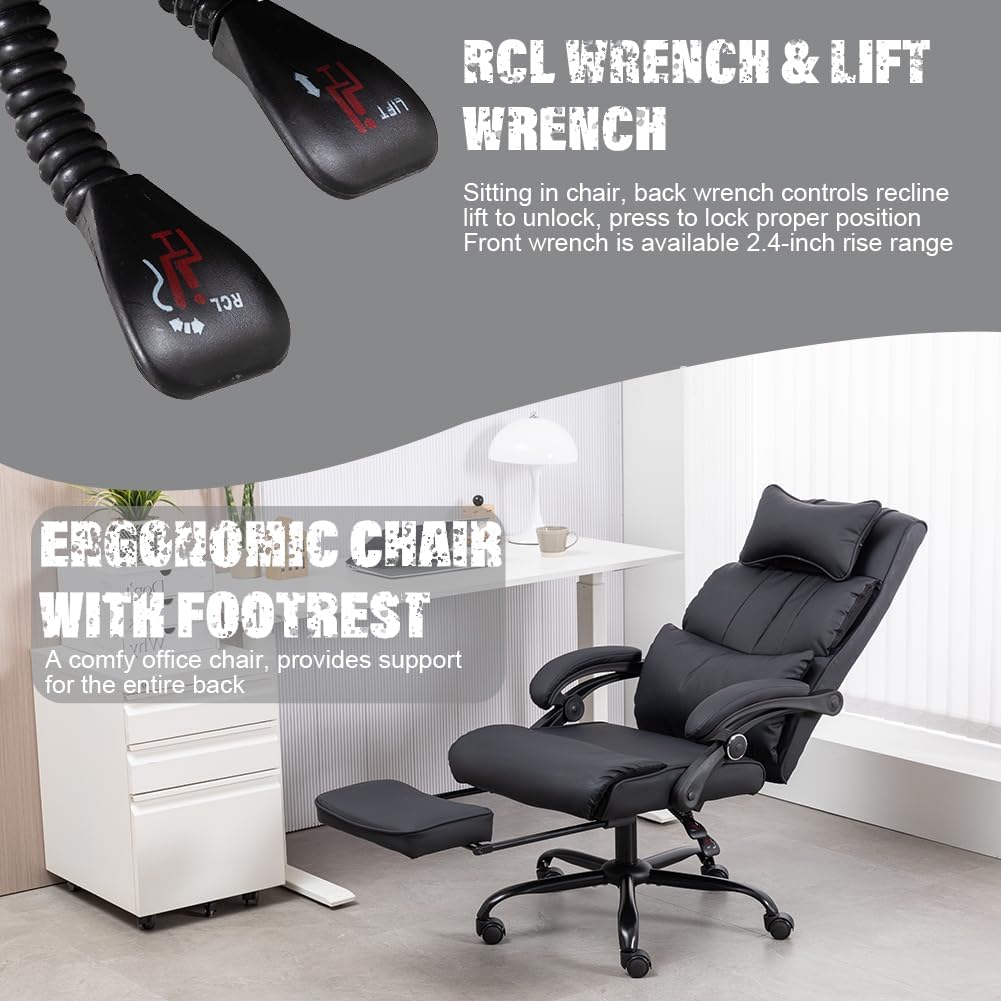- Reclining Office Chair, Big and Tall Office Chair Executive Office Chair Ergonomic Office Chair with Foot Rest Home Office Desk Chairs High Back Leather Chair with Lumbar Support