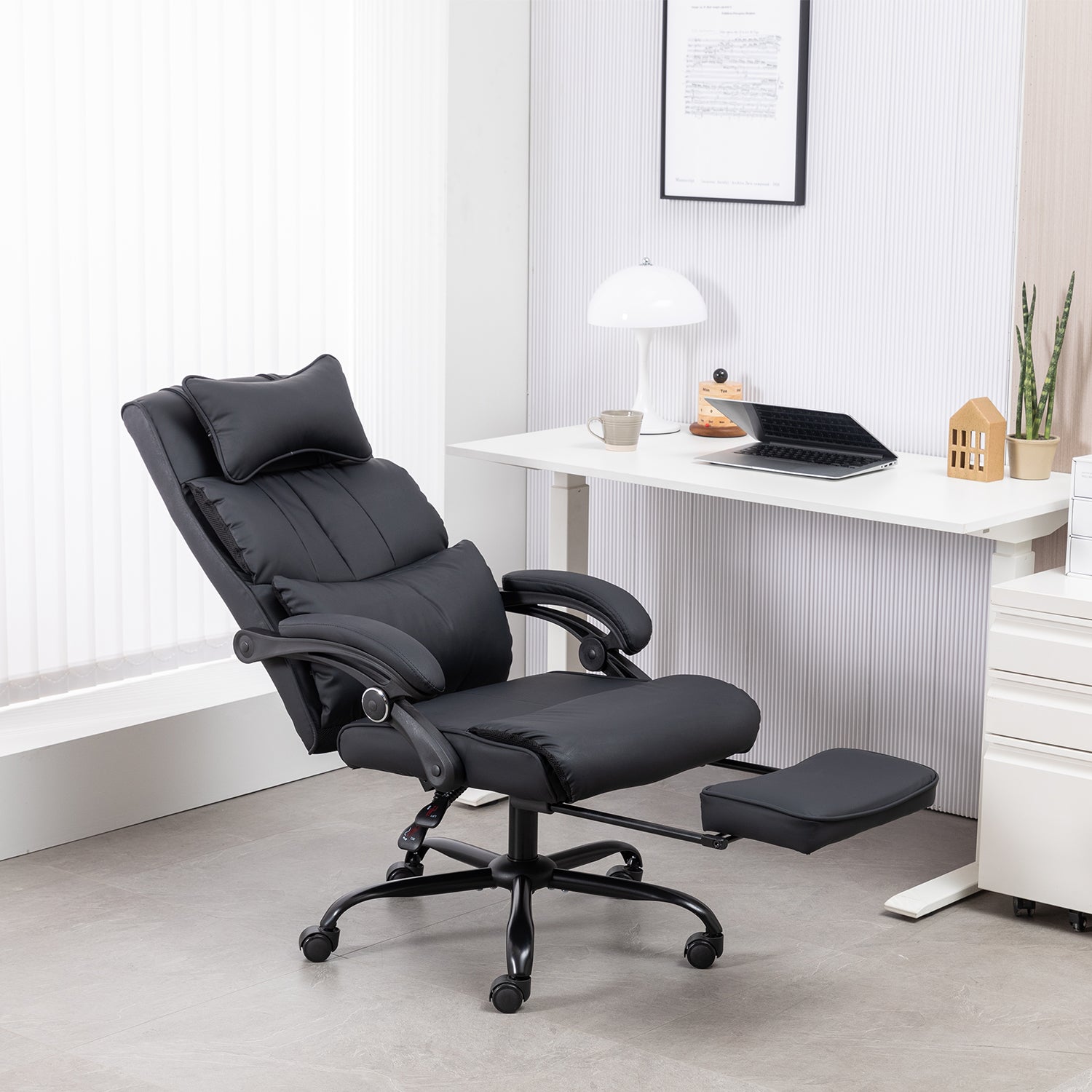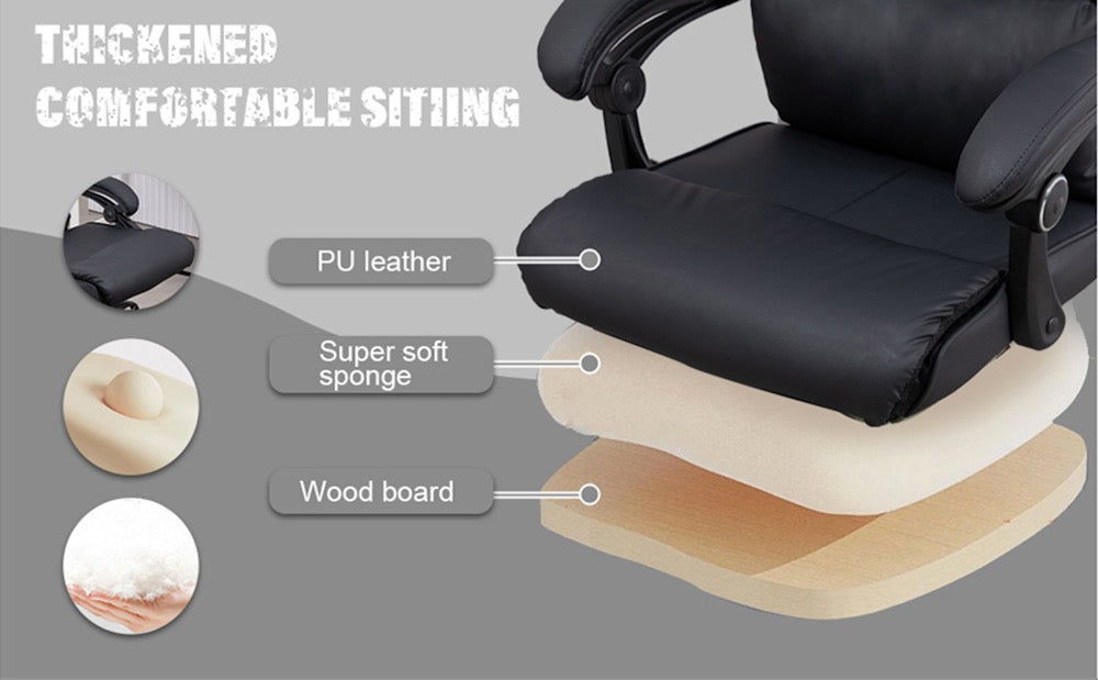 Comfort Reclining Leather Office Chair with Foot Rest | BLACK