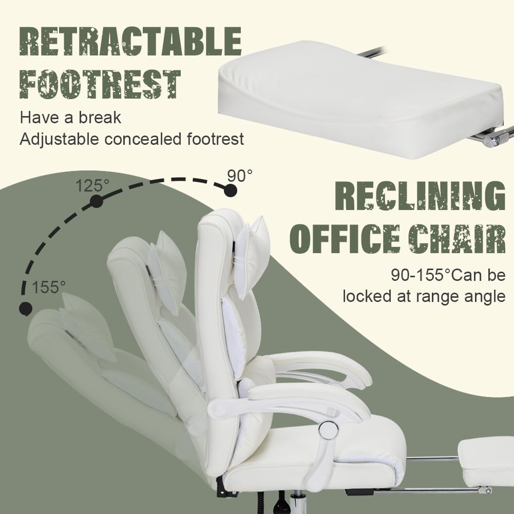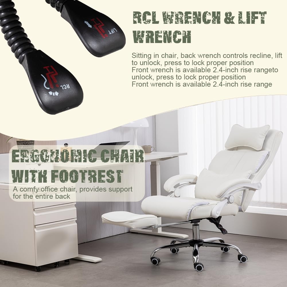 - Reclining Office Chair, Big and Tall Office Chair Executive Office Chair Ergonomic Office Chair with Foot Rest Home Office Desk Chairs High Back Leather Chair with Lumbar Support