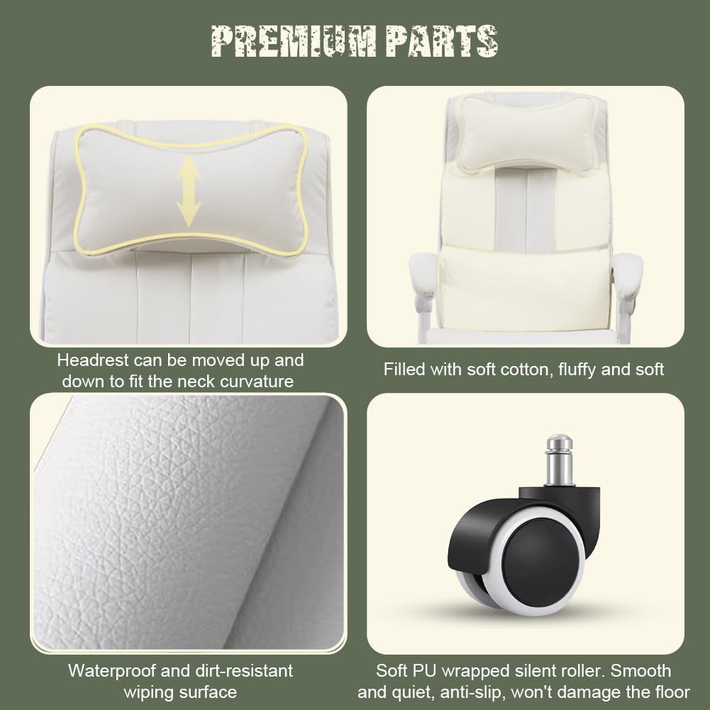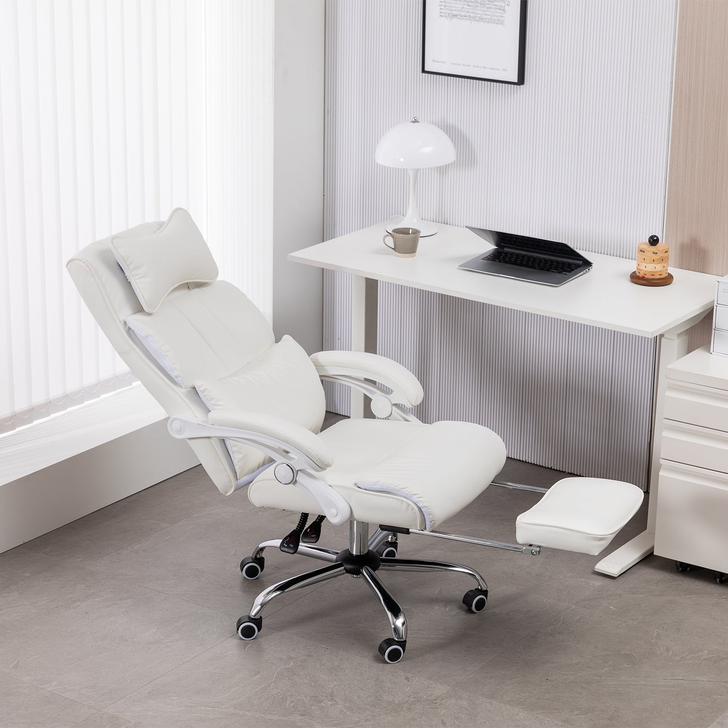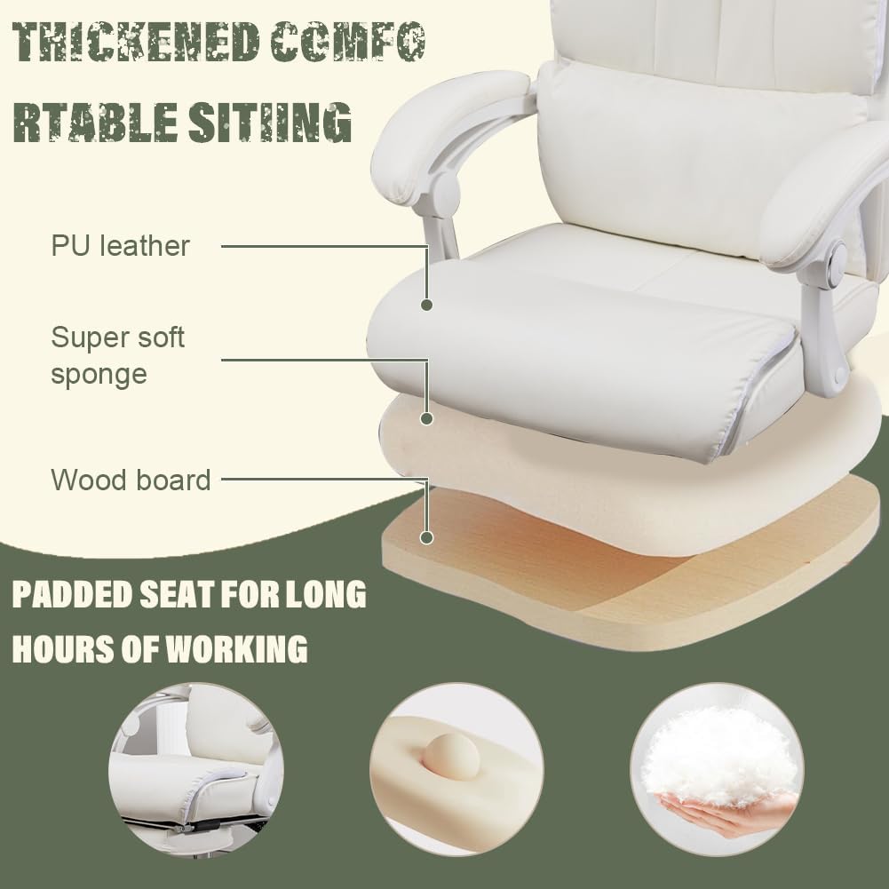 Comfort Reclining Leather Office Chair with Foot Rest | WHITE