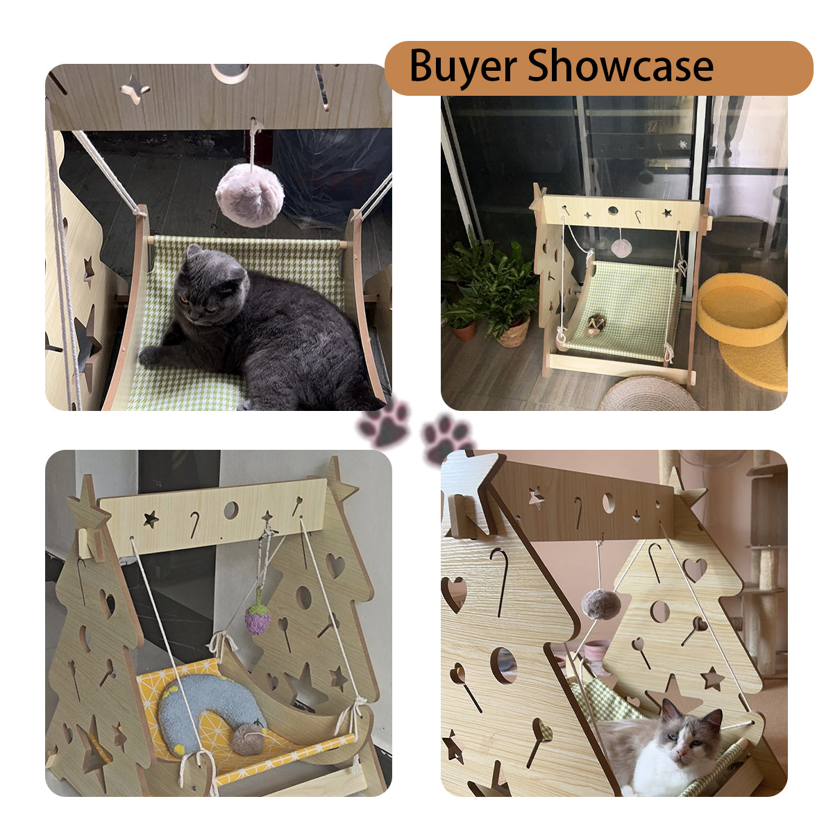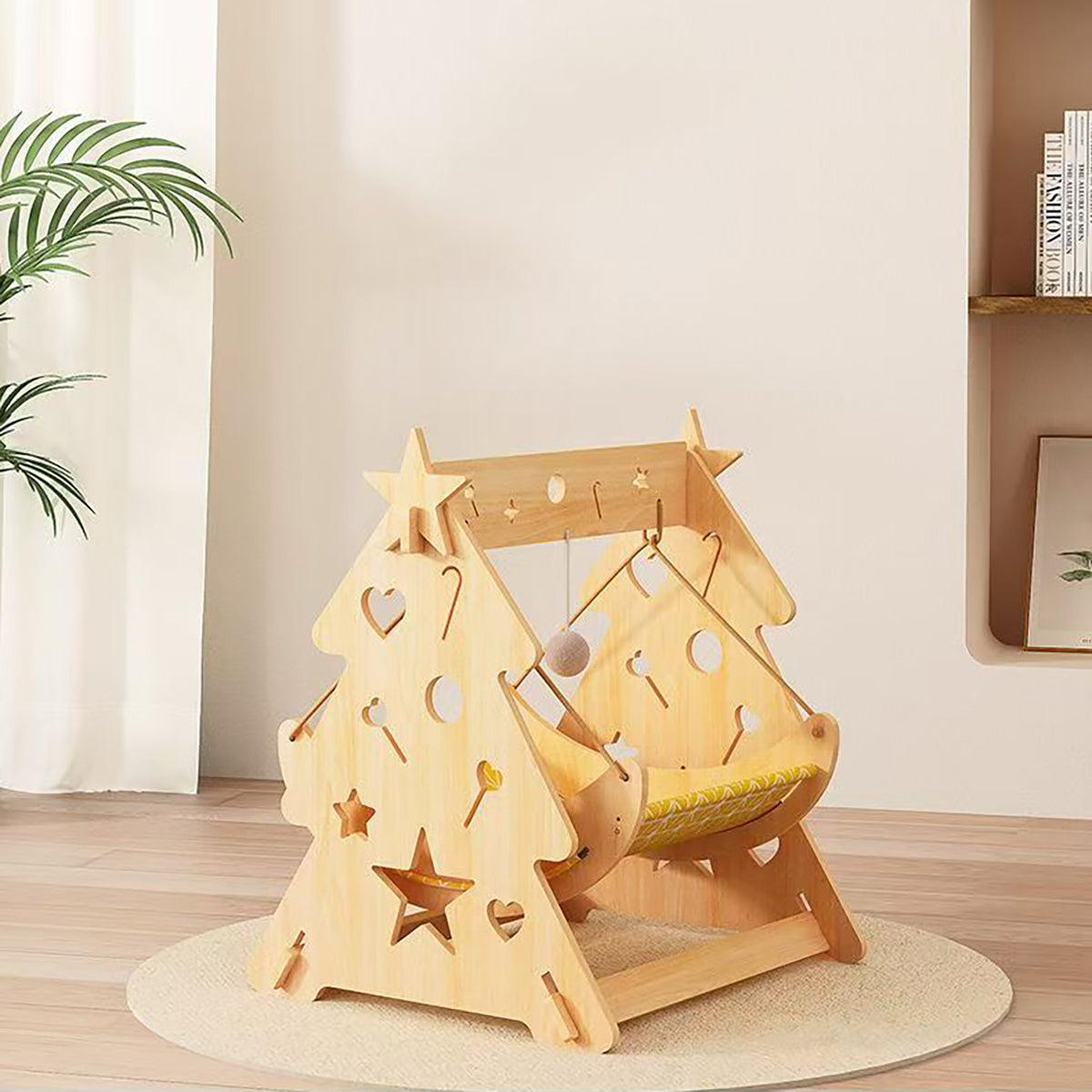 - VERSATILE DESIGN: 2-in-1 wooden cat hammock combines a cozy bed with a fun swing, featuring decorative star and heart cutouts for added style