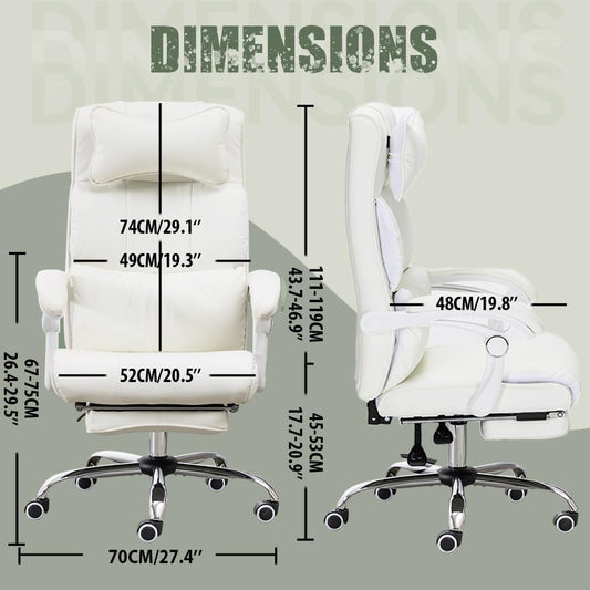 Comfort Reclining Leather Office Chair with Foot Rest | WHITE