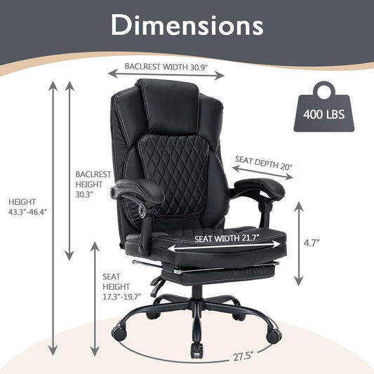 Comfort Reclining Leather Office Chair with Foot Rest | BLACK