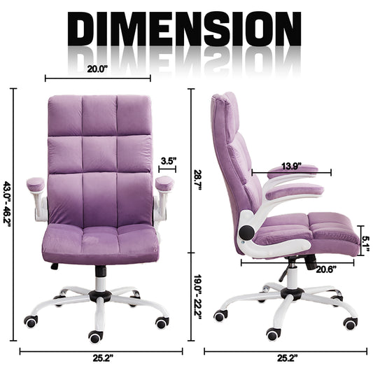 Cute Velvet Home Office Chair Comfy Desk Chair | PURPLE