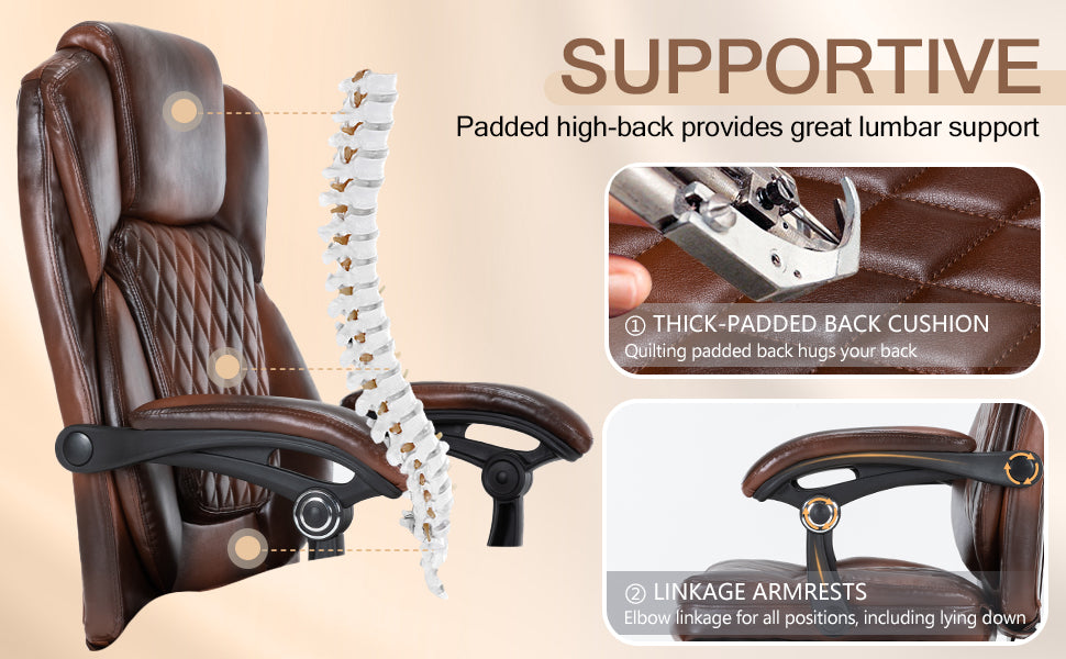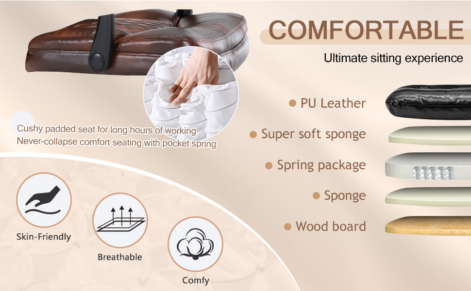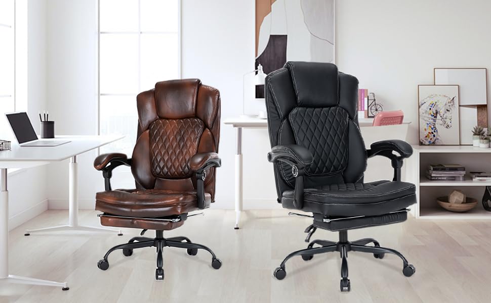 - Ergonomic Office Chair with Footrest, Executive Chair PU Leather Computer Chair, Reclining Desk Chair with Leg Rest, Coil Spring Thick Cushion, Big and Tall Chair 400 lbs Capacity