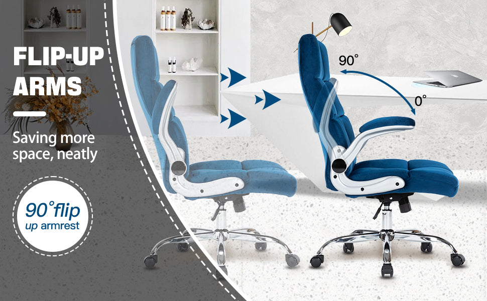 - High Back Velvet Home Office Chair with Swivel, Executive Computer Desk Chair with Adjustable Back Tilt and Flip-up Armrest, Fabric Comfy Thick Padding Ergonomic Office Chair