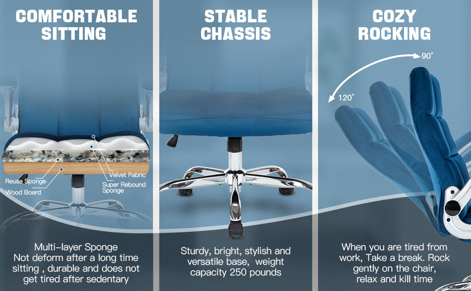 Cute Modern Velvet Fabric Comfy Home Desk Chair | BLUE