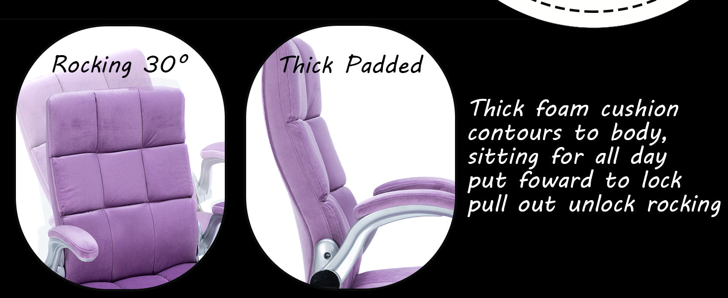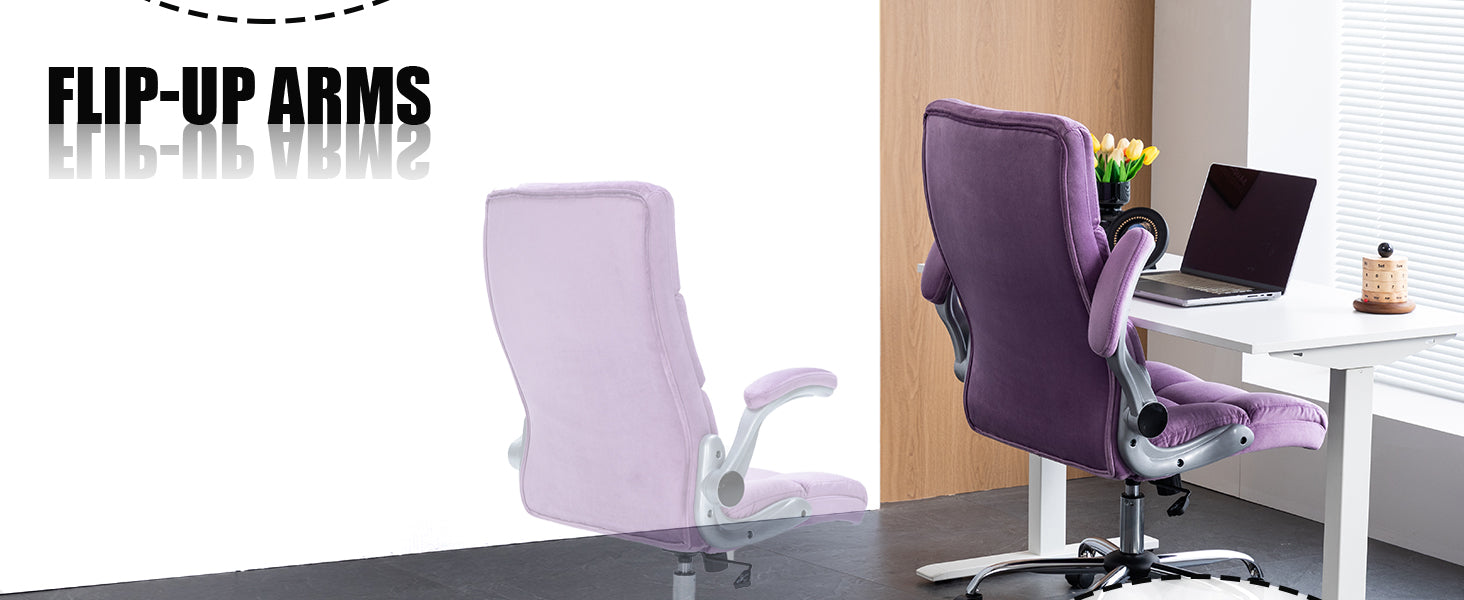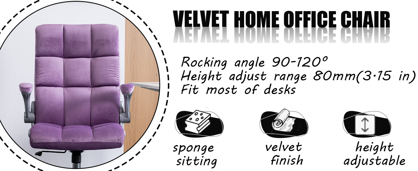 - High Back Velvet Home Office Chair with Swivel, Executive Computer Desk Chair with Adjustable Back Tilt and Flip-up Armrest, Fabric Comfy Thick Padding Ergonomic Office Chair